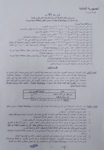 بناءً على القرار رقم 445/ب تاريخ 30/3/2022 (تحديد التعرفة الرسمية ضمن نطاق مدينة بيروت للشركات والمؤسسات التي تؤدي خدمة ركن السيارات Valet Parking)).