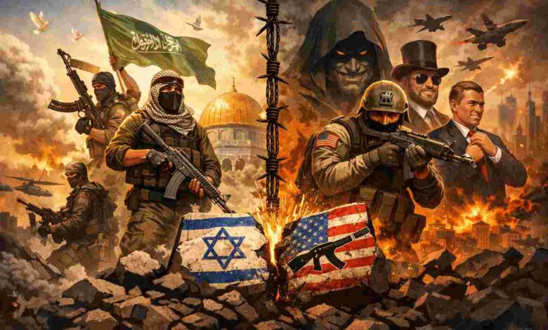 العدو الأصيل ومعه الافرنج وتتر ومغول الشرق وبعض القبائل العربية المرتدة من نفط وغاز وهم الأقوى والمنتصرين من ناحية ومن ناحية أخرى يوجد الفدائيين المحاصرين والمغلوب على أمرهم ولمن يسأل فالفدائي هو كل من حمل السلاح سابقا وحاليا وفي المستقبل ضد العدو الأصيل ايّاً كان انتماؤه ورايته ولونه ولهجة لفظ اسمه وابرز قادتهم ياباني اسمه كوزو اوكوموتو .