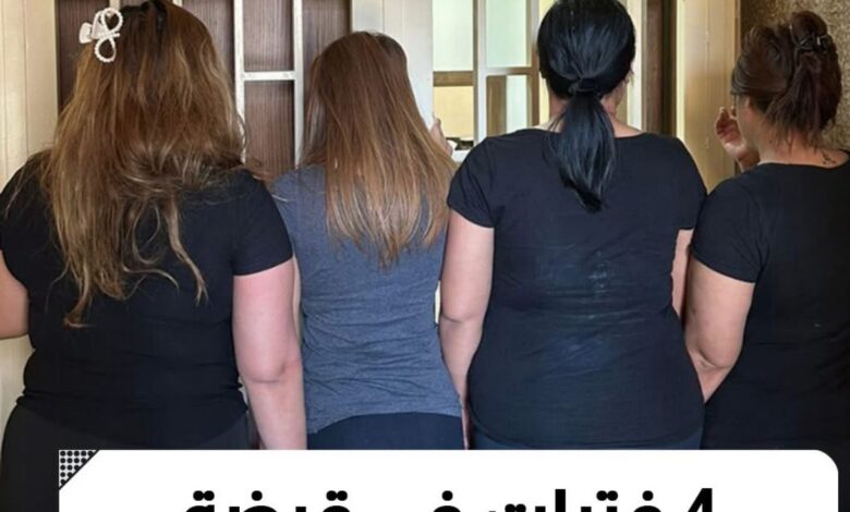 توقيف أربع فتيات من جنسيات مختلفة بالجرم المشهود، أثناء قيامهن بأعمال مخالفة للآداب مع الزبائن، مقابل مبالغ مالية متفق عليها مسبقًا.