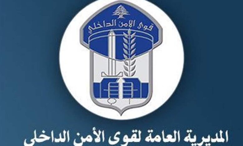 صدر عن المديريّة العامّة لقوى الأمن الدّاخلي ـ شعبة العلاقات العامّة البلاغ التّالي: