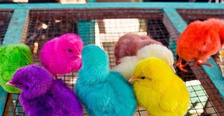 الأكيد أن عملية تلوين الصيصان ليست عملية لطيفة كما أشكال هذه “الكتاكيت” التي تكون عادة أعمارها قصيرة بسبب ما تمرّ فيه. فهذه العملية قد تتم في 3 طرق: إمّا عبر رش الصوص بالأصباغ، أو من خلال حقن الأصباغ داخل البيضة قبل تفقيسها. أما الطريقة الثالثة الأكثر شيوعاً بسبب سرعتها ورخصها فهي جمع الصيصان في وعاء واحد، وإفراغ المواد الملونة عليها، ثم خلطها يدوياً وكأنها أشياء مجرّدة من الإحساس.