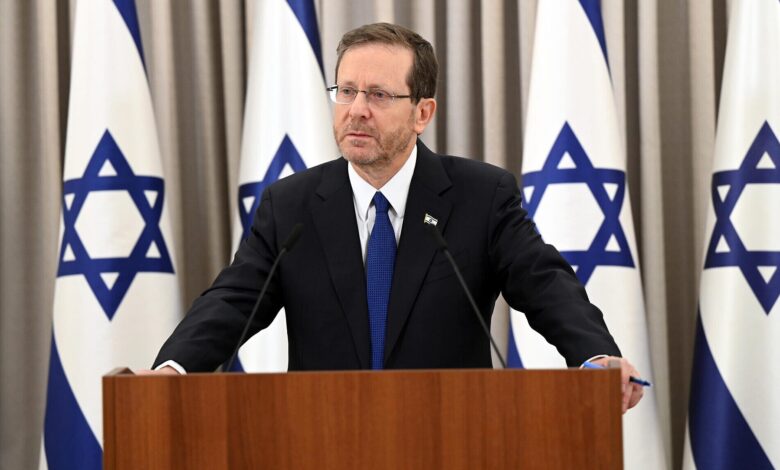 الرئيس الإسرائيلي (إسحاق هرتسوغ) الذي وقف أمام الإعلام ليتحدث عن الإنسانية وهو رئيس أكبر كيان مجرم وقاتل ولا يعرف معنى الإنسانية